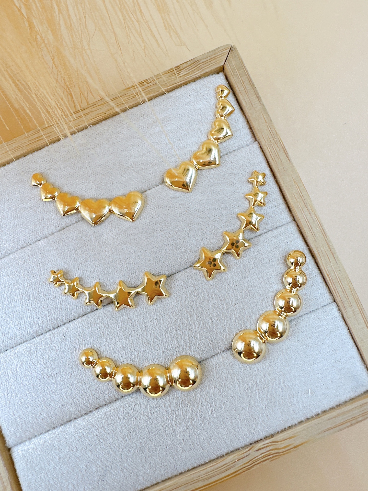 Brinco Earcuf Estrelas/Corações 20,00 € Desconto de %. IVA incluído. Partilhar Forma Estrelas Corações Comprar Contactar Brincos semijoia Earcuf Estrelas/Corações Banhado a ouro 18K Marca MM NaturAtelier
